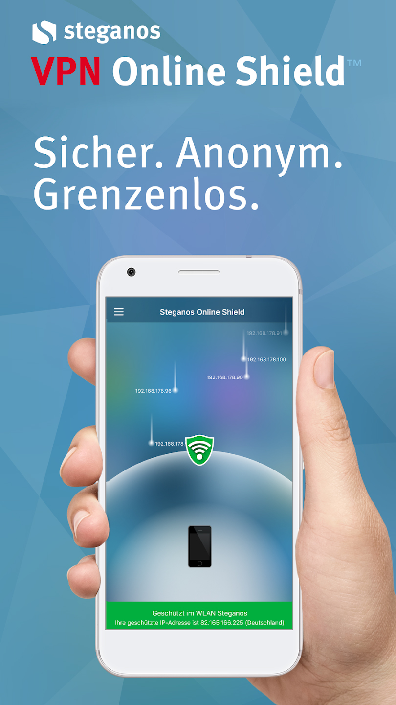 Ein VPN verschlüsselt Ihren Datenverkehr vom Smartphone zum VPN-Server und trägt so dazu bei, dass Sie ohne Bedenken öffentliche WLANs, Hotspots etc. benutzen können und trotzdem sicher surfen. Durch die Verschlüsselung können Cyberkriminelle Ihren Datenverkehr weder mitschneiden noch manipulieren.