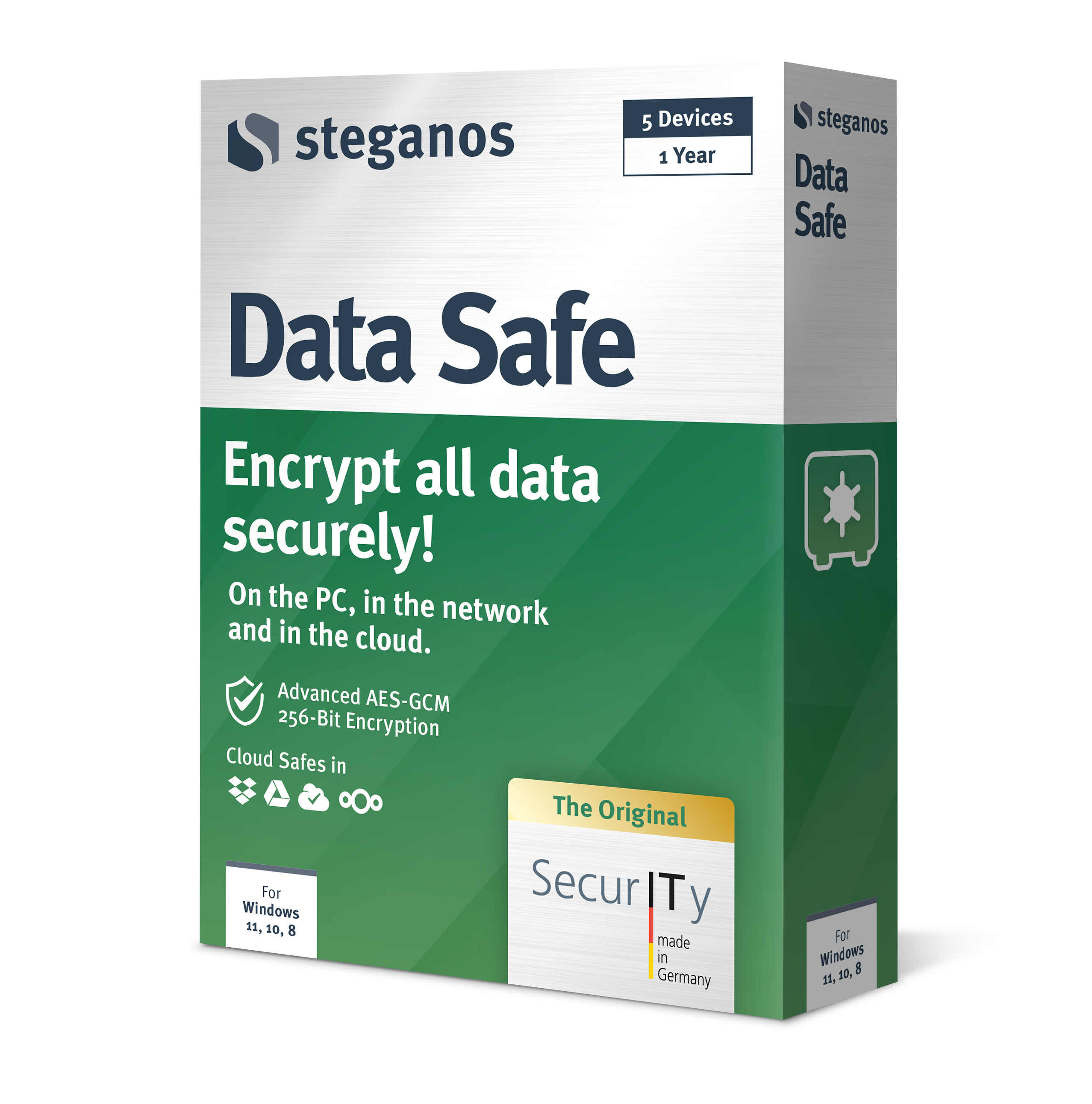 Steganos Data Safe uses strong state-of-the-art 256-bit AES-GCM encryption with AES-NI hardware acceleration for optimal protection against thieves, snoopers and secret services.Protect Safe with Two-Factor-Authentication